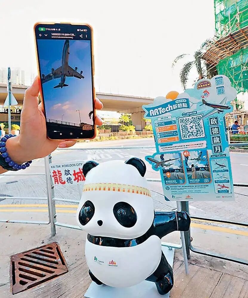 为了丰富游客体验,“特色社区之香港龙城深度游”项目内新增了多个AR装置,让游客可以在深度游期间不忘“打卡”。其中,位于贾炳达道的“城寨魔方”,复刻了九龙城寨的经典外貌,可带领游客“穿越时空”;龙岗道太子道西交界的“启德岁月”,则可以让大家重温香港昔日飞机低飞的景象;在打鼓岭道太子道西交界的“潮泰狂舞曲”,呈现了潮州美食和泰国飞象在空中相遇的有趣情景。