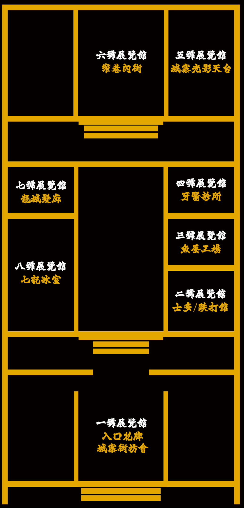 △“九龙城寨光影之旅”电影场景展八大展馆示意图
