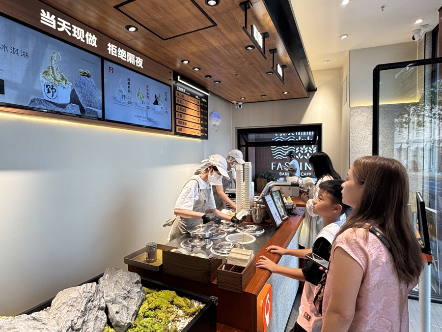 而在每天的21时之后,更多消费者为了“买一赠一”而来。在野人先生紫荆广场店,二三十位顾客等在门店,以优惠价品尝新晋网红。“工作人员一直在吆喝‘买一赠一’,我们来看看。”徐女士一家三口花38元买了双拼口味,再加上赠品,等于尝到4种冰淇淋,“很满足”。