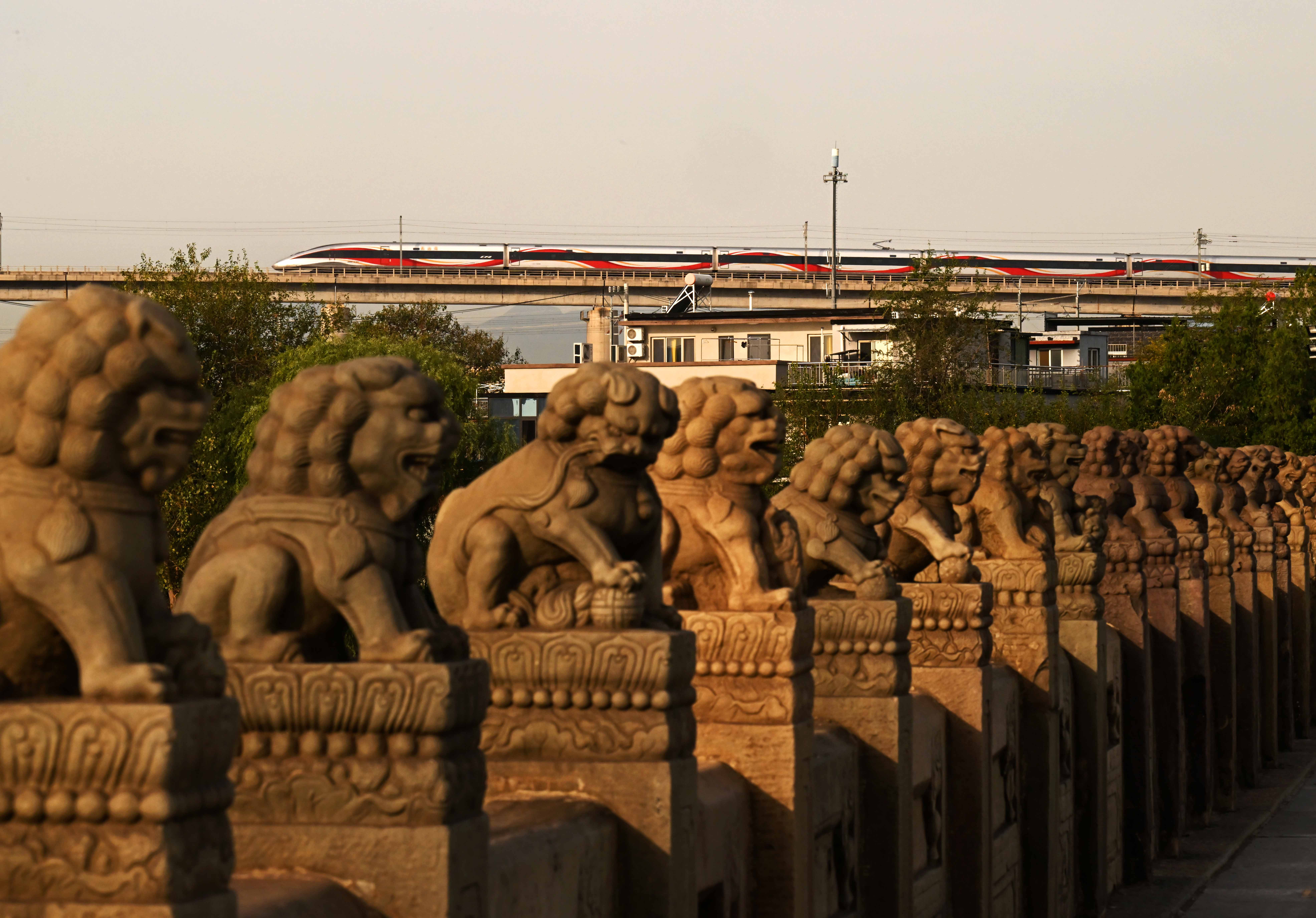 今年国庆中秋假期,不少游客来到卢沟桥参观。当复兴号从宛平城、卢沟桥旁驶过,历史的见证和未来的希望在此刻同框。网友感叹:越看越感动,这一幕太震撼了!